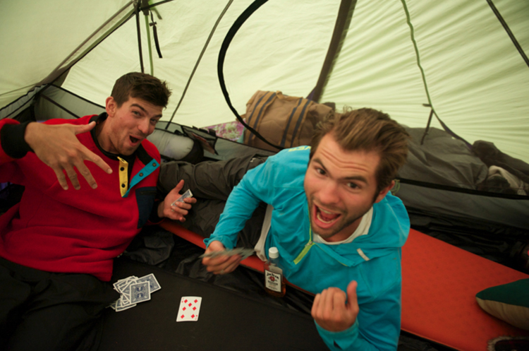 After what seemed like forever, the storm finally let up, and we finished our hike, and set up the tent just in time to avoid a second wave of freezing rain and extreme winds. With cribbage at hand, the second storm seemed to go by relatively quickly, and we found a window to cook dinner before climbing back into the tent to sleep.