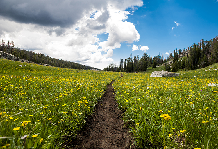 However, after Photographerâs Point, the path became confusing. We slowly realized that the trail that we were taking was primarily meant for pack horses, and we eventually stopped seeing any human footprints on the trail at all. Becoming more and more uncertain, we kicked up the pace to make it to the next trail crossing so that we could pinpoint where we were on the map, however, when we finally reached a set of beautiful wildflower meadows, we realized that we had hiked over 3 miles off course, and the only way to get back in the direction that we were going was to retrace our steps for 3 miles and head back in the opposite direction from where we had been going.