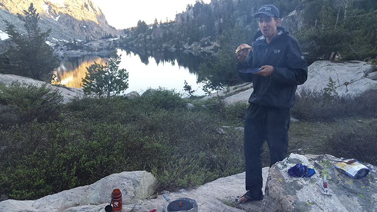The rest of our day included a chilly swim, a delicious sausage quesadilla lunch, and some frisbee tossing in a nearby clearing. While exploring the nearby areas, we discovered some horseshoes likely from old pack trips â enough to start our own game! And to top the day off, we finished by making some delicious sausage and meatball pita pizzas! With refreshed limbs and some beautiful time-lapses of the lake and surrounding mountains, we went to bed sad to see that our trip was slowly nearing its end.