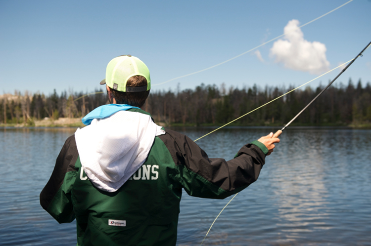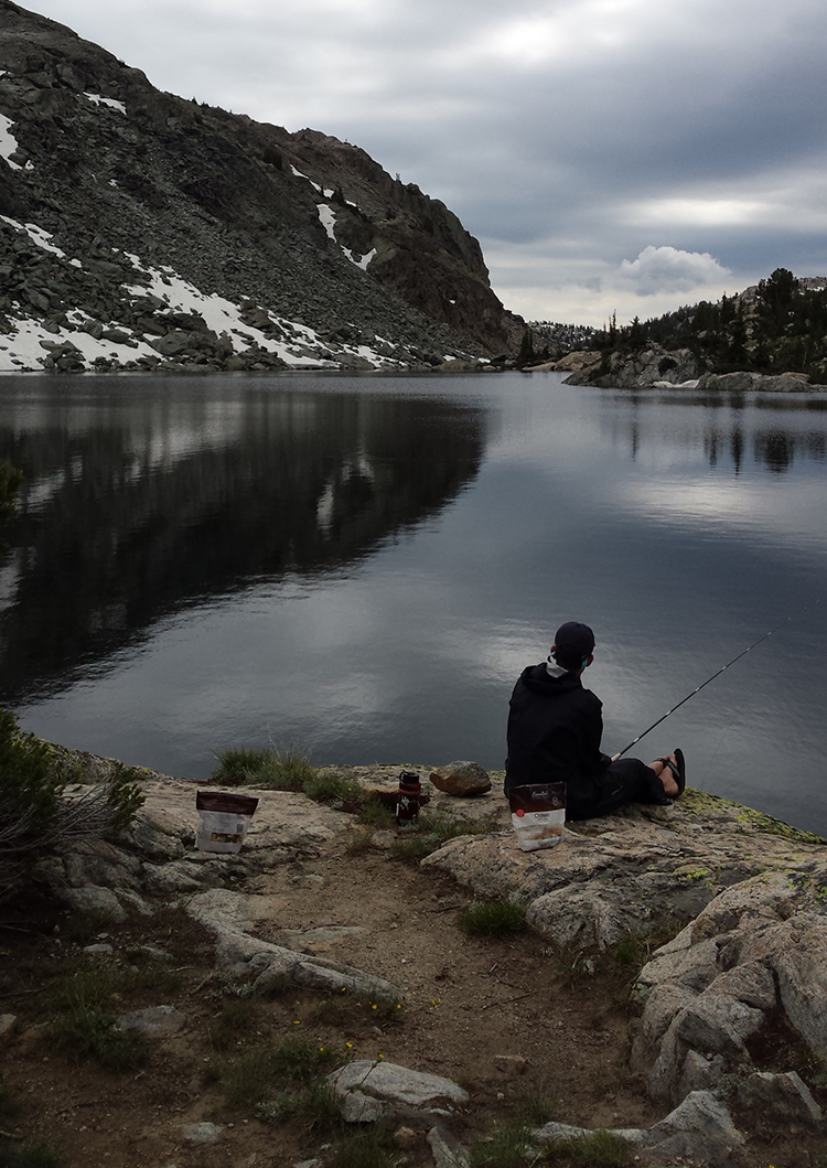As you might imagine, when we woke up the next morning, we were in the mood for a rest day. But, we certainly made the most of it! We began the day with some freeze-dried breakfast, and began fly fishing on our rocky point. While the fishing in the morning wasnât so successful, when we tried again that evening, the fish were biting like crazy, and we nearly caught (and released) a brookie with each cast!
