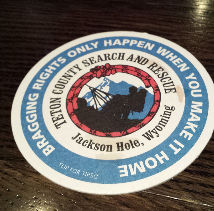 With our final evening before the trip, we figured the only logical thing to do was to enjoy our last beer in civilization. While we savored our last few sips of the local Snake River Pale Ale, joking about what we would do if we ran into any bears on the trail (âSend in the drone!â), we noticed that our coasters had a sobering reminder of what we were attempting and the dangers we actually faced. âBragging rights only happen when you make it home.â While we certainly never hoped to call in Teton County Search and Rescue, it was definitely reassuring to know that they were out there, to help us out if we ever needed them.