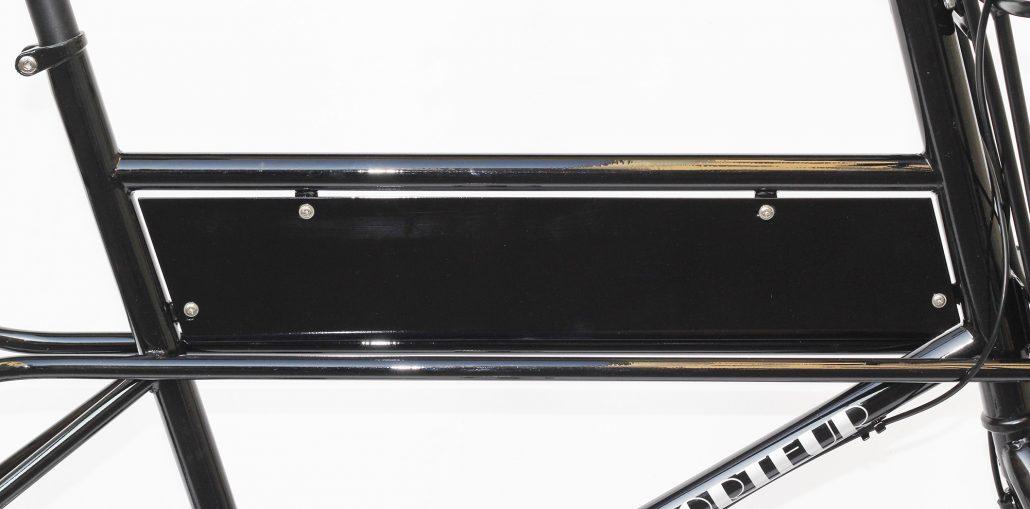 La plaque centrale amovible est destinĂ©e Ă dĂ©corer le vĂ©lo, au nom d’une marque, d’une enseigne de distribution ou d’un prestataire de service, d’une municipalitĂ©, etc.